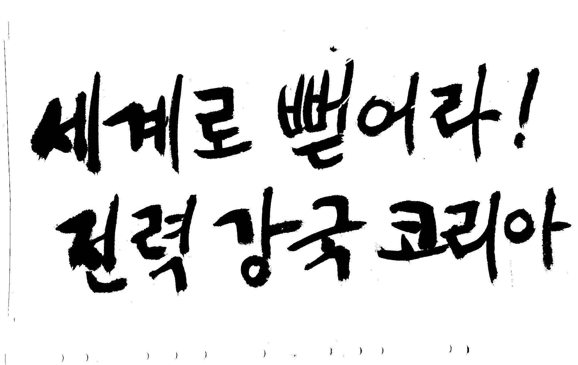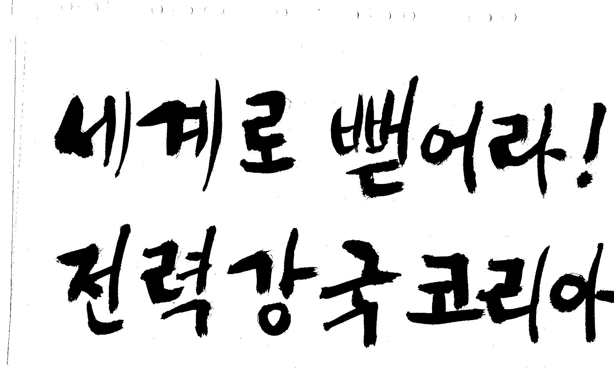 캘리 좀 부탁드려요!~ 김철호 일반 1 10658 2008.12.24 12:09 > > > > > 전력회사 신문광고를 하는데요 캘리로 멋지게 하고픈데 > > 캘리프로그램으로 아무리 써도 느낌이 안나옵니다 ㅜ.ㅜ > > 이런걸 부탁한다는 자체가 너무나도 염치없지만 부탁드립니다. > > > > 세계로 뻗어라! 전력강국 코리아 > > > 보기는 쉬워도 하기는 어려운게 > 세상 모든 일 일겁니다. > 그중에 캘리그라피가 그런것 일 겁니다... > 스캔중에 글꼴이 잘린것은 서로다른글꼴서 편집하시길... > 글수가 많아서 어쩔 수없네요... >