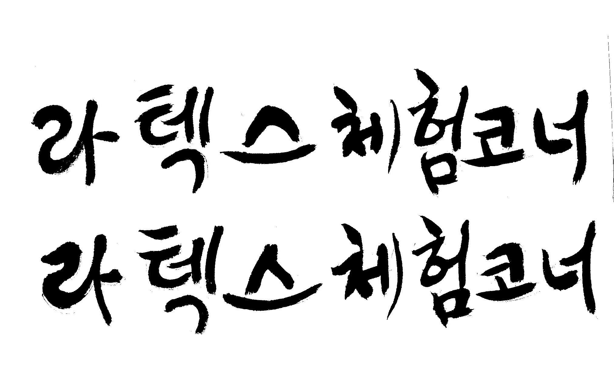 캘리좀 부탁드립니다~ 김철호 일반 0 5910 2008.12.19 01:07 > > 김철호님 지난번에 주신 캘리는 잘 썼습니다~ 그때,, 쪽지로 인사도 드렸었는데 기억하시나요? ^^; > 오월이라는 글자는 달력에 예쁘게 박혀나왔습니다~ > 다들 예쁘다고 글자 어떻게 만들었냐며.ㅋㅋ > 한가지 더 부탁을 드릴려구요~ > "라텍스 체험코너"라고 부탁드립니다~ > > 이런느낌으로 부탁드려도 될런지..이미지 첨부합니다~ > 나름 많이 했는데... 잘 않되네요.. 기쁜맘으로 올리지 못해 죄송...