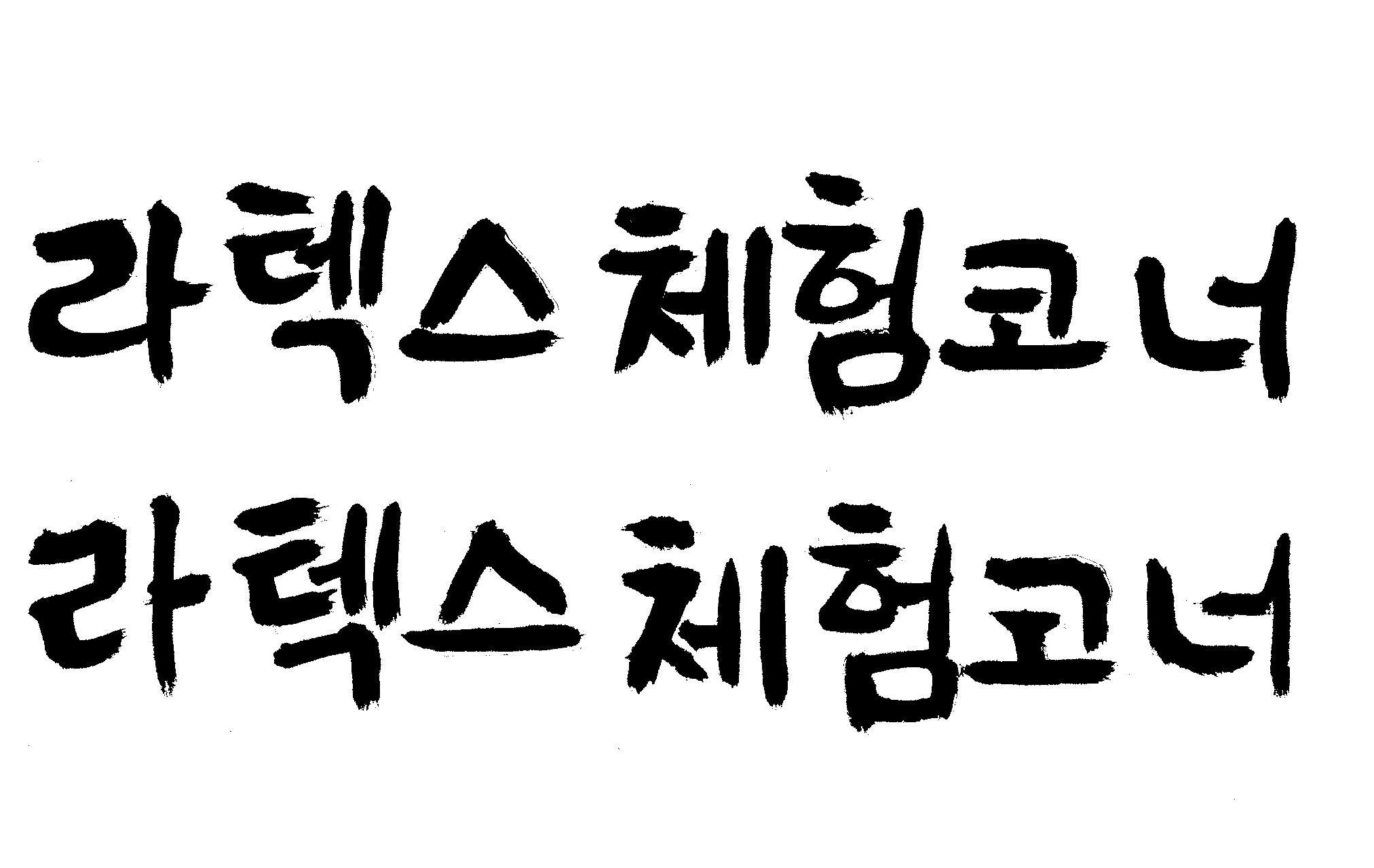 캘리좀 부탁드립니다~ 김철호 일반 0 5594 2008.12.19 01:08 > > > > > 김철호님 지난번에 주신 캘리는 잘 썼습니다~ 그때,, 쪽지로 인사도 드렸었는데 기억하시나요? ^^; > > 오월이라는 글자는 달력에 예쁘게 박혀나왔습니다~ > > 다들 예쁘다고 글자 어떻게 만들었냐며.ㅋㅋ > > 한가지 더 부탁을 드릴려구요~ > > "라텍스 체험코너"라고 부탁드립니다~ > > > > 이런느낌으로 부탁드려도 될런지..이미지 첨부합니다~ > > > 나름 많이 했는데... > 잘 않되네요.. > 기쁜맘으로 올리지 못해 죄송... >