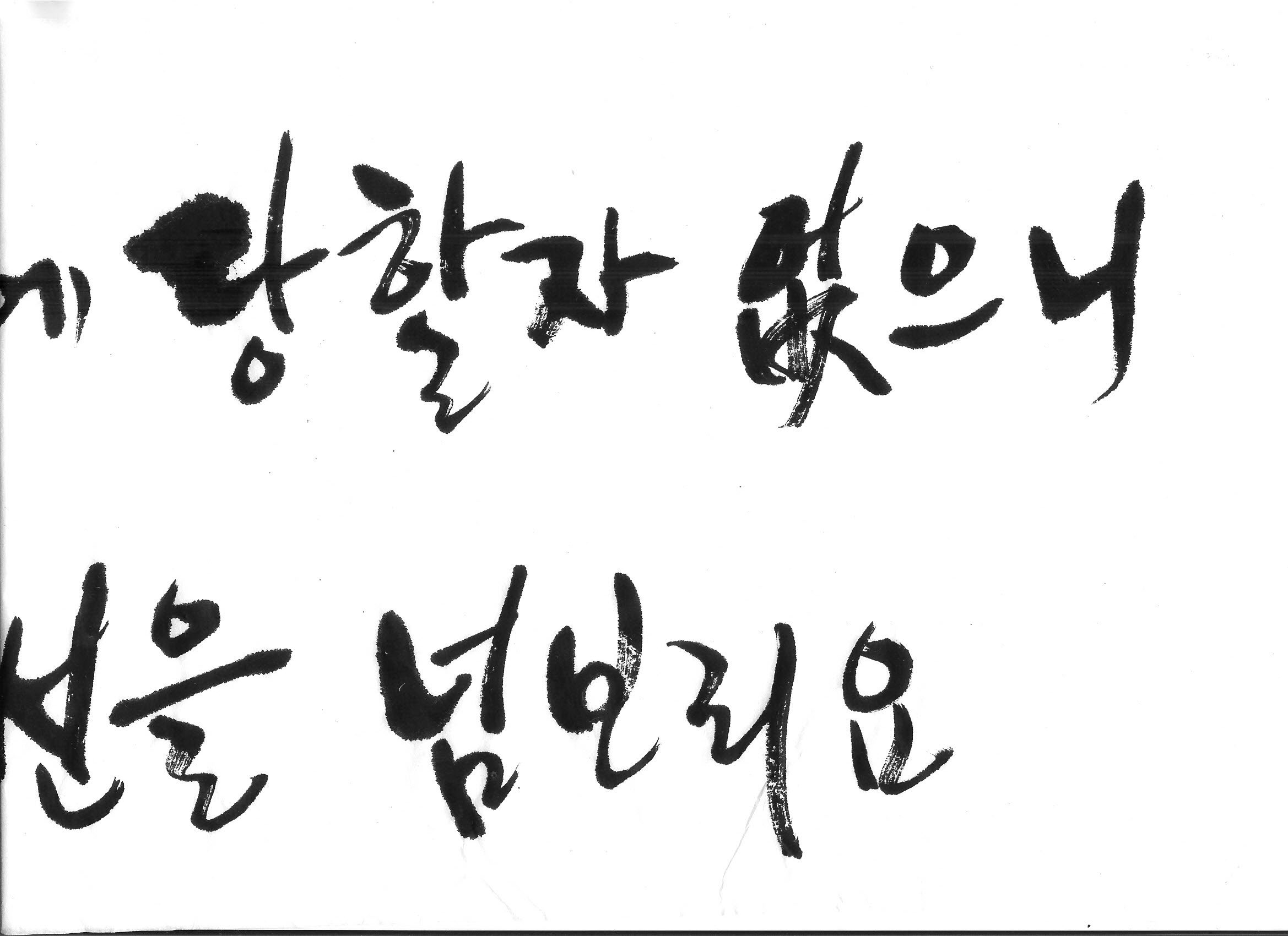 힘찬 캘리 부탁합니다. 김철호 일반 0 6646 2008.09.22 00:51 > > > > > 조선의 영웅들, 천하에 당할 자 없으니 > > > > > > 왜적이 어찌 감히 조선을 넘보리오 > > > > > > > > 이렇게 두 문장입니다. > > 임진왜란을 주제로 한 캘리인데요. 염치없지만 부탁드려 볼꼐요. > > >