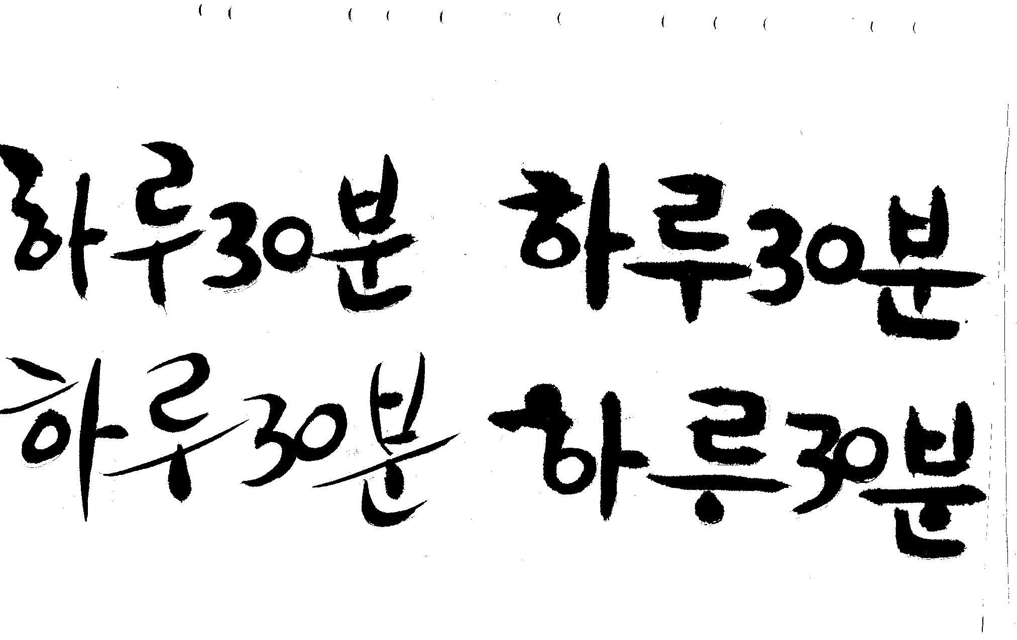 캘리부탁드려요 김철호 일반 0 6412 2008.12.31 13:43 > > 하루30분 <------- 이걸 캘리로 부탁드립니다 > 희망찬 새해 되세요... 스캔이 삐딱하게 되어 손좀 보셔야겠네요..