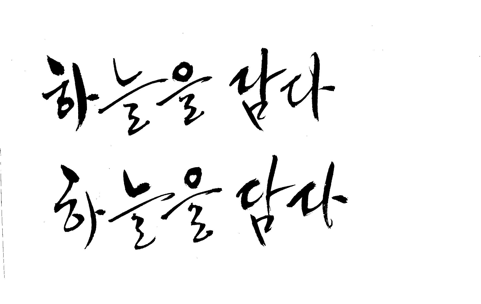 > > 청량한 느낌의 캘리를 원합니다. 기교를 많이 부리셔도 되고요
