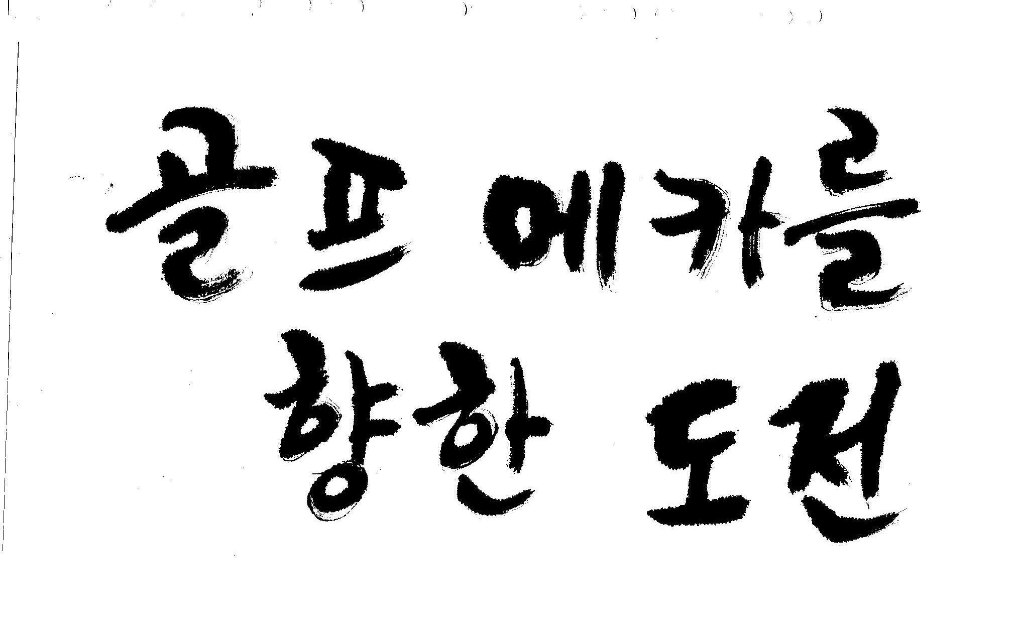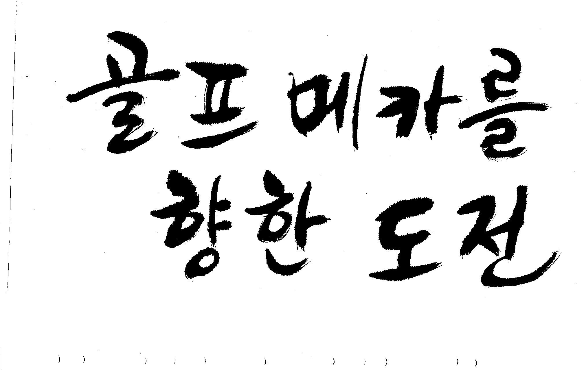 우경의 행복한 캘리세상-골프메카 김철호 일반 0 8771 2009.07.18 10:25 리듬감을 최대한 살리고 ㅡ 스포츠의 운동감과 밝음 기교섞인 획을 배제--일반적인 느낌 굵기변화를 통하여 도전 낱말을 강조 스타일은 비슷하지만 ...한 사람이 썼으니까 ㅎㅎㅎ 서로 다른 글꼴을 올린 것은... 비교하여 보시고... 편집자에게 선택권을 주는 것입니다