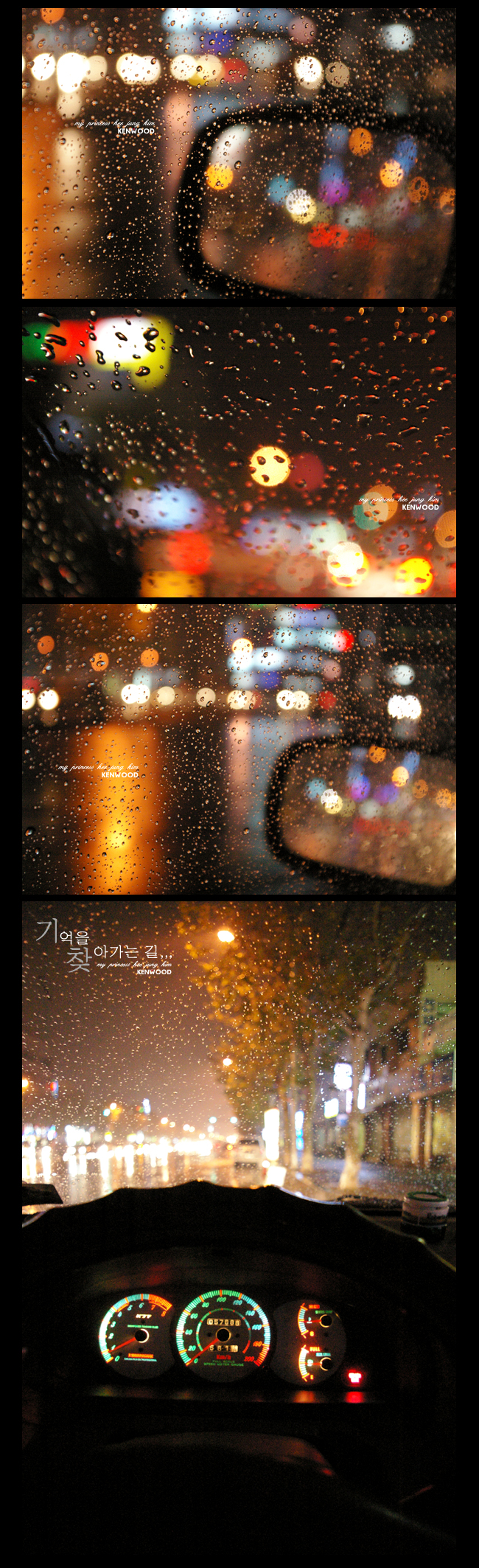 우와 우와.. 네온불빛하고 빗방울이 진짜 너무너무 이쁘다.. 너무 잘찍으셨네여.. 샷~~~~!!! 빗방울 사진을 보면 좀 외로움이나 서글픔같은게 많이 느껴지는대.. 이건 느낌이 참 좋아여~~ 넘 이쁘다........진짜루~~~~~~~~~~~~~
